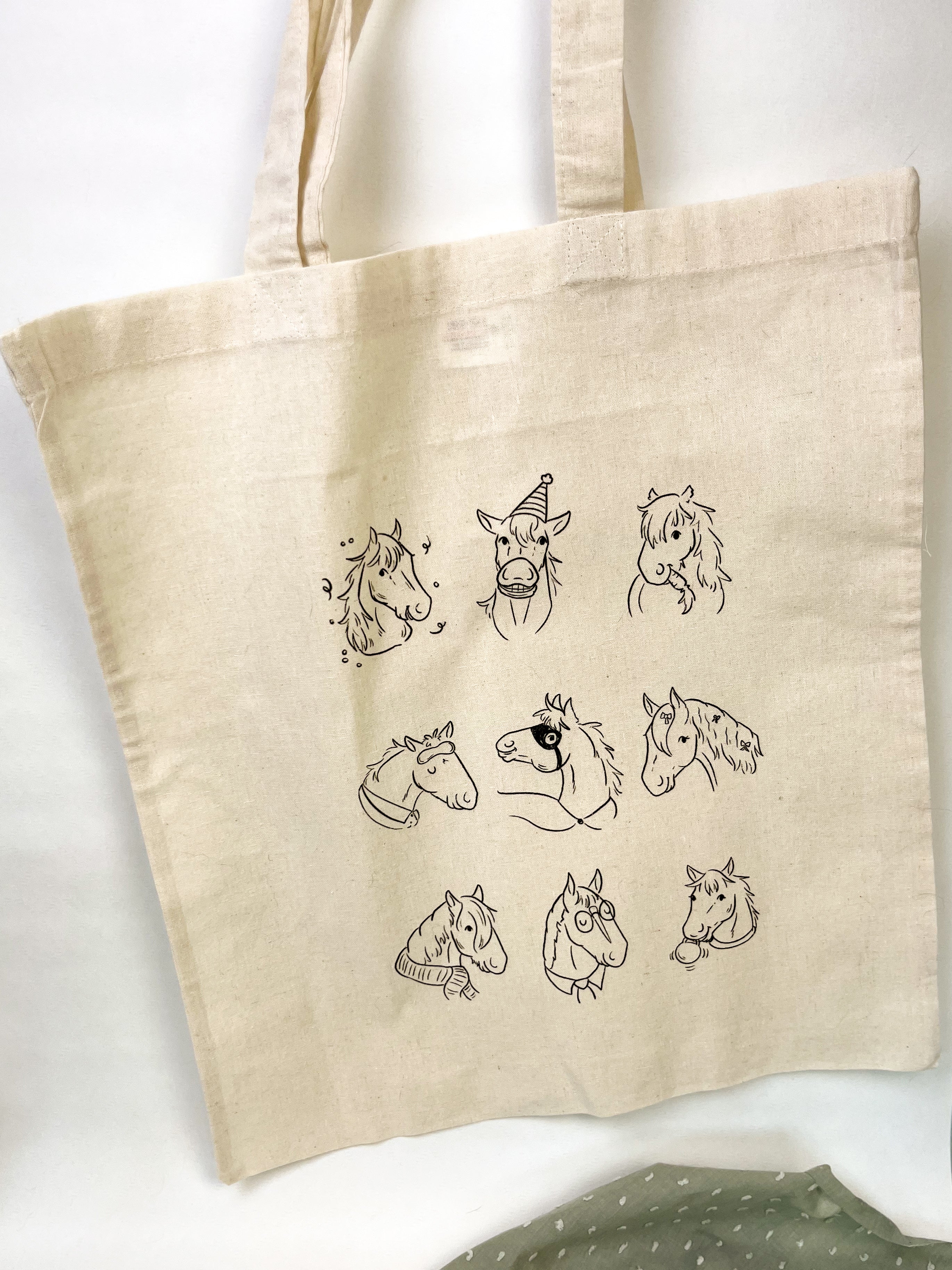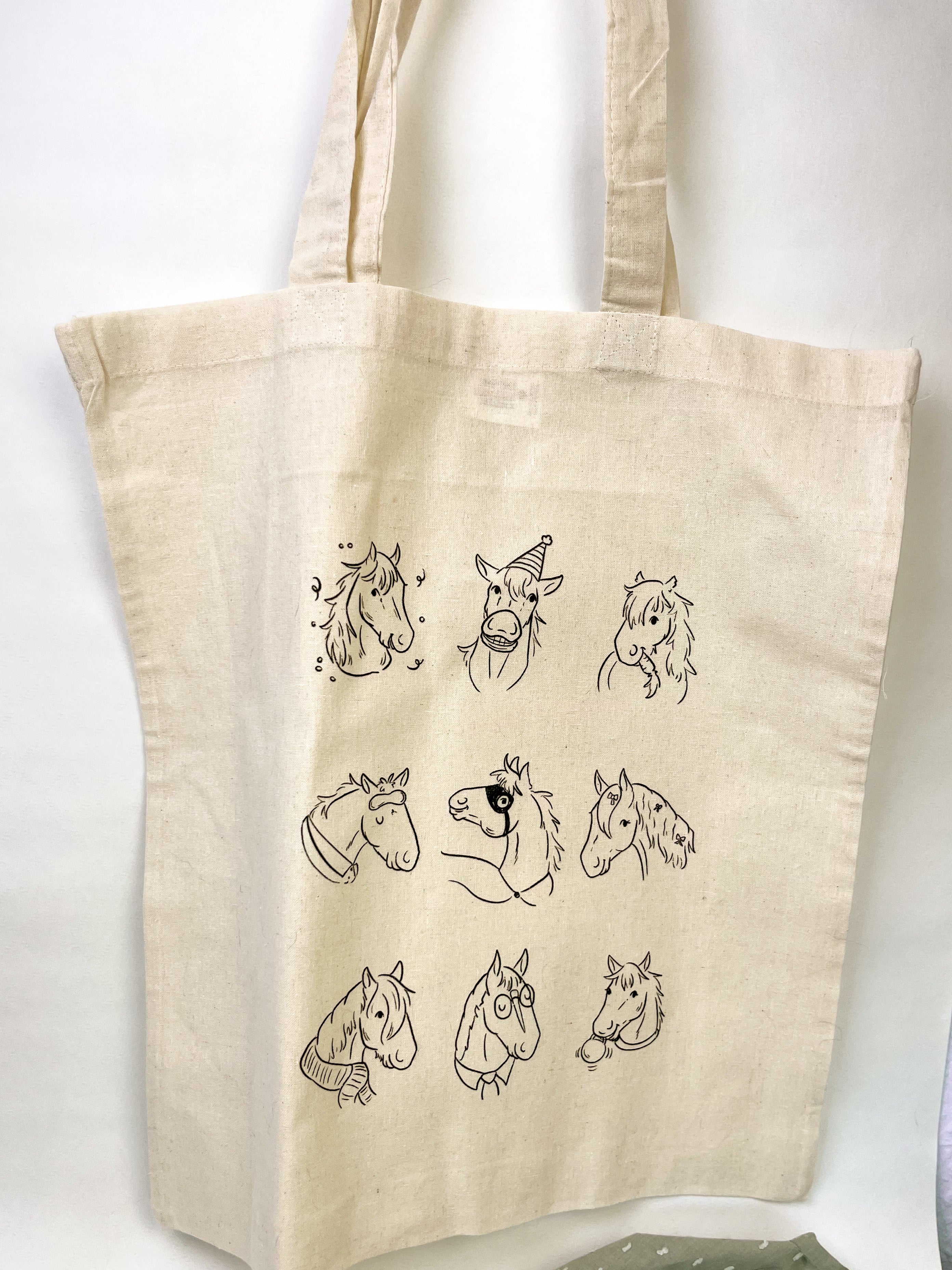 Dieser Baumwollbeutel ist praktisch, leicht und nachhaltig – perfekt für Stall, Schule oder Freizeit. Die süße Pferdeillustration macht ihn zu einem tollen Accessoire für alle Pferdemädchen und Pferdeliebhaberinnen. Ideal als Geschenk oder für den eigenen Gebrauch.