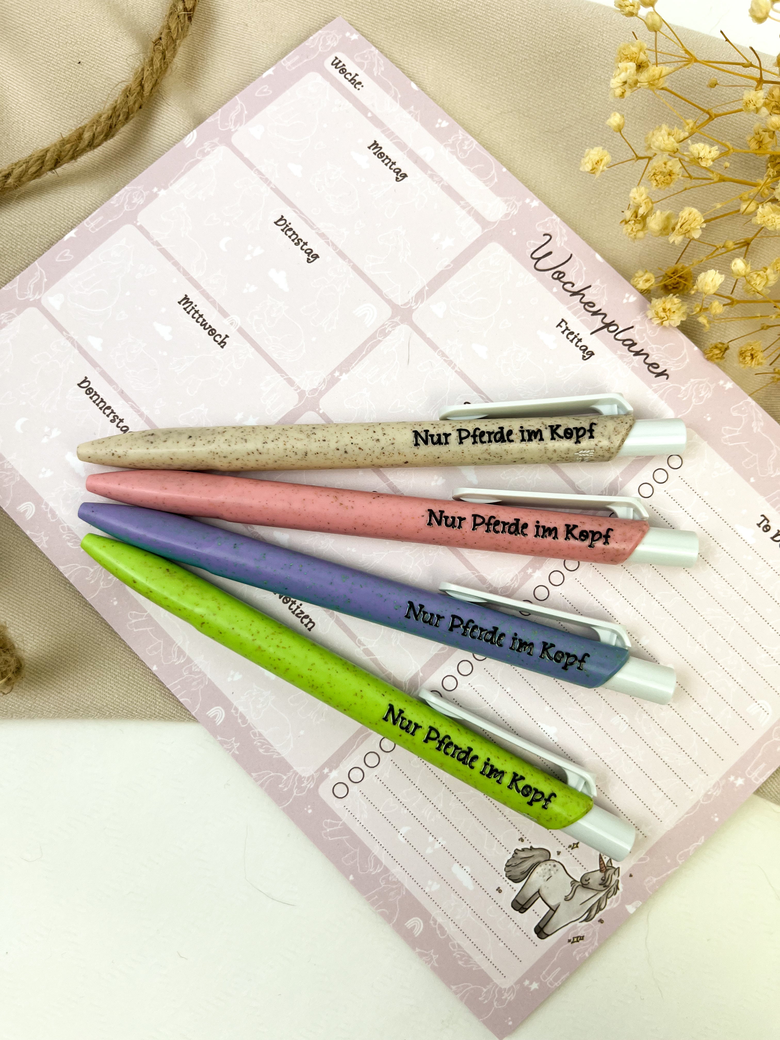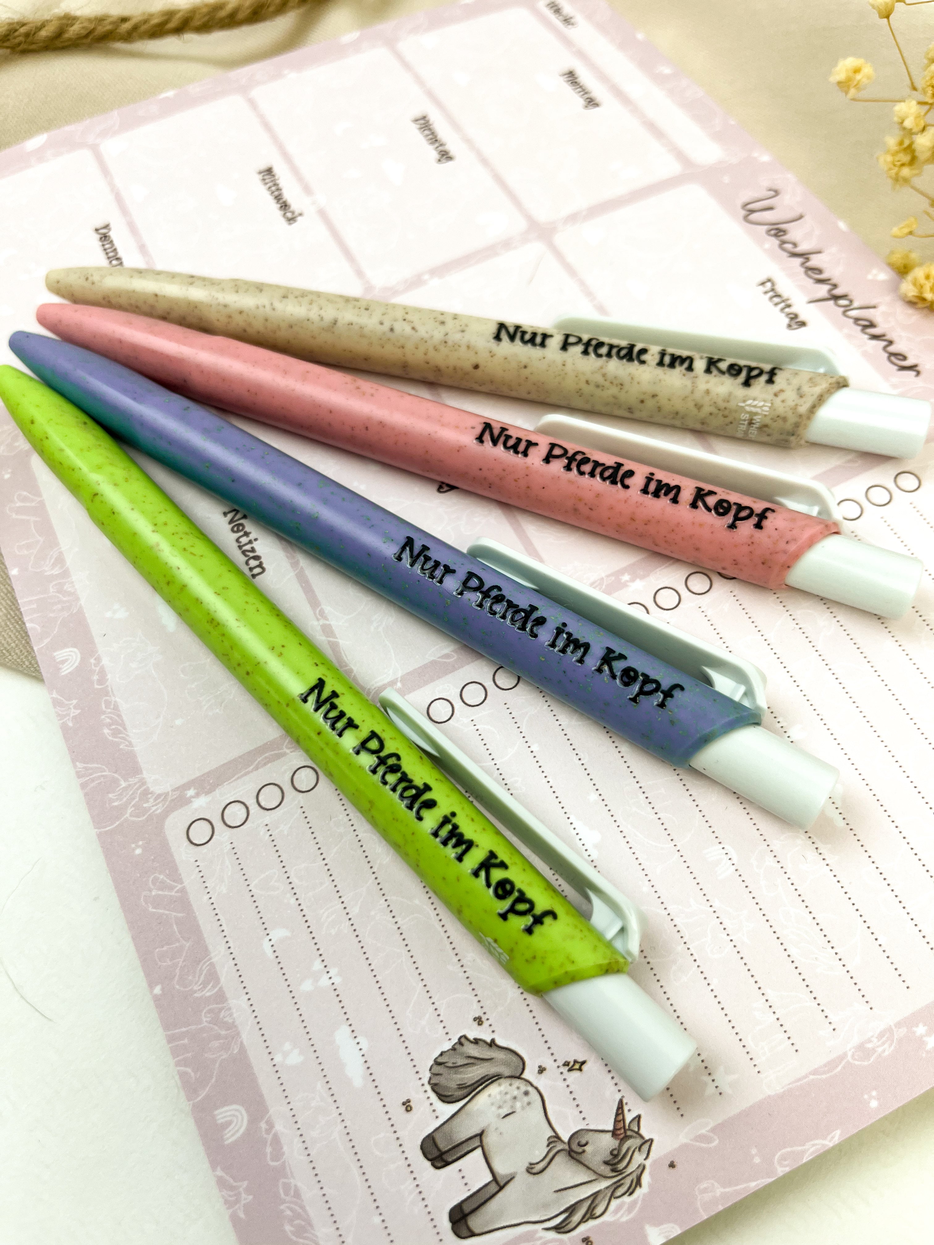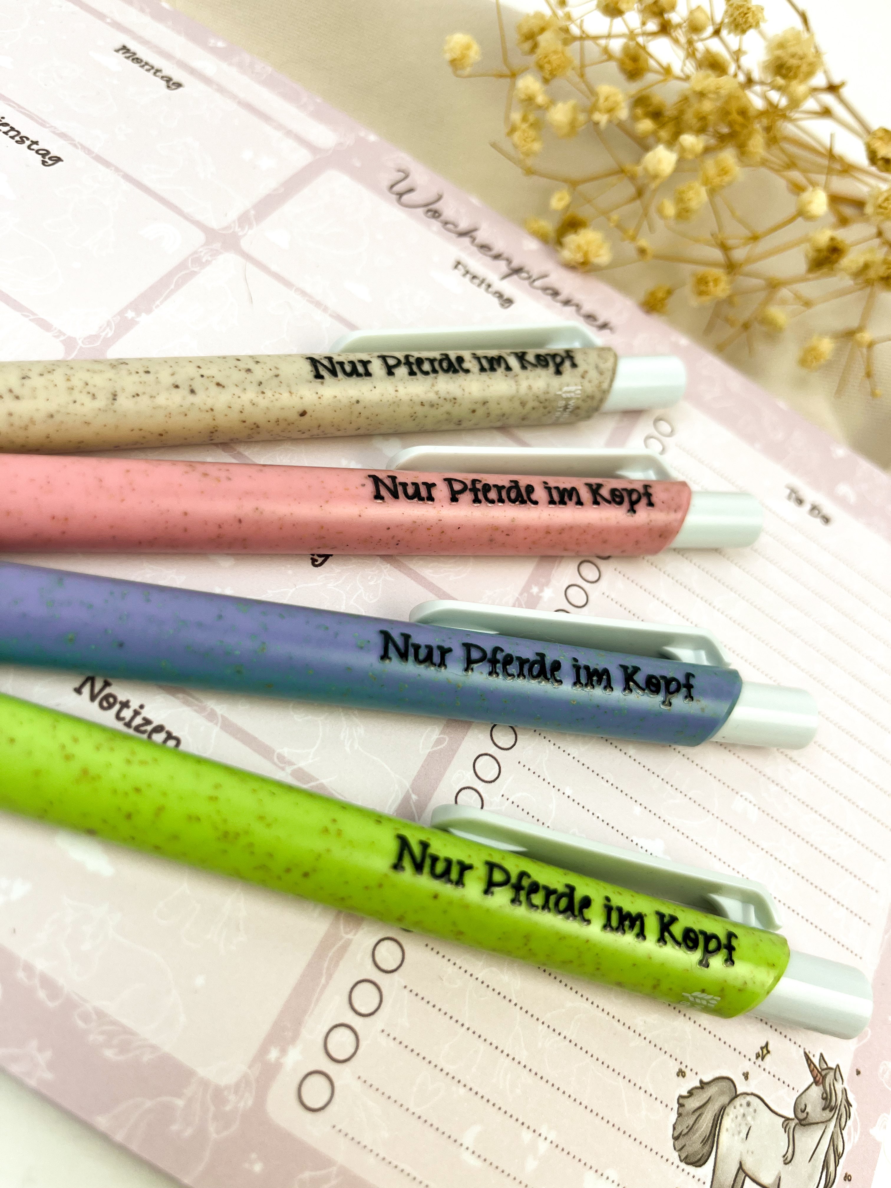 Kugelschreiber aus Stroh-Kunststoff "Nur Pferde im Kopf"