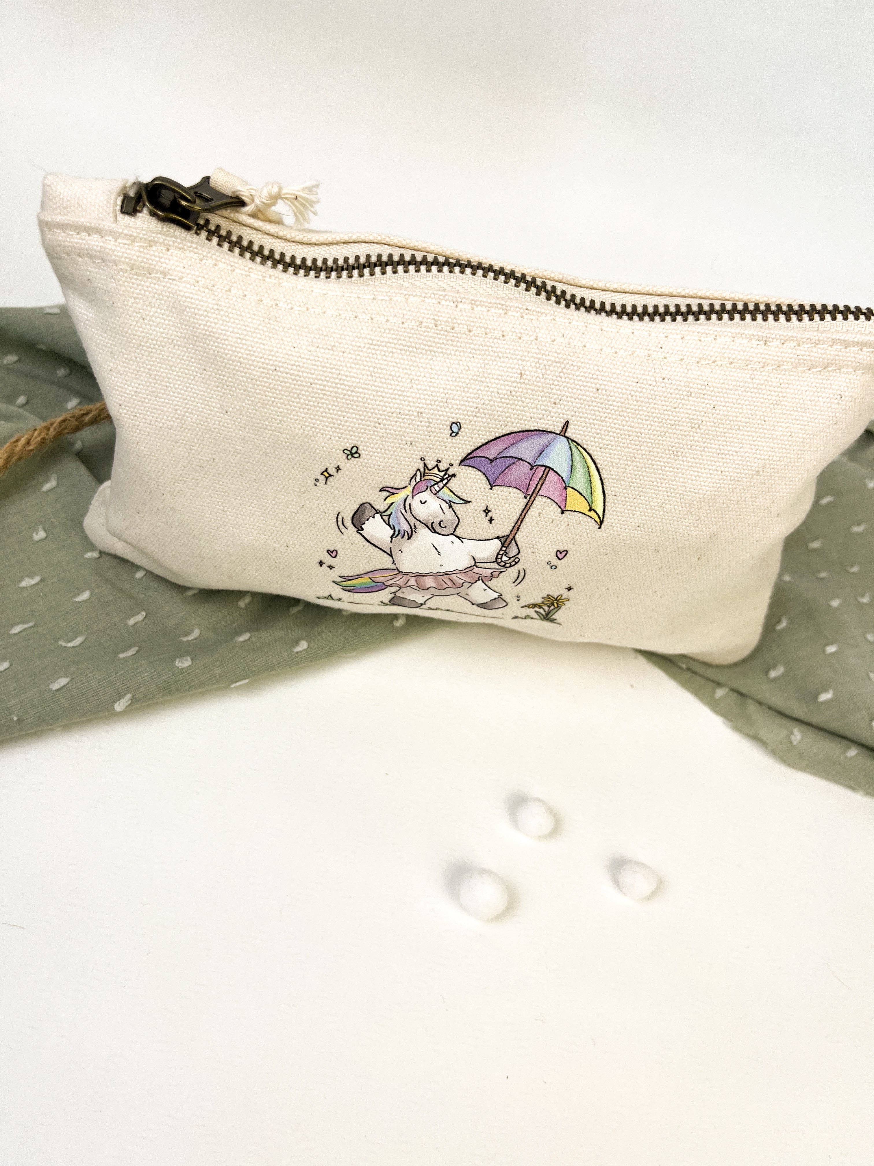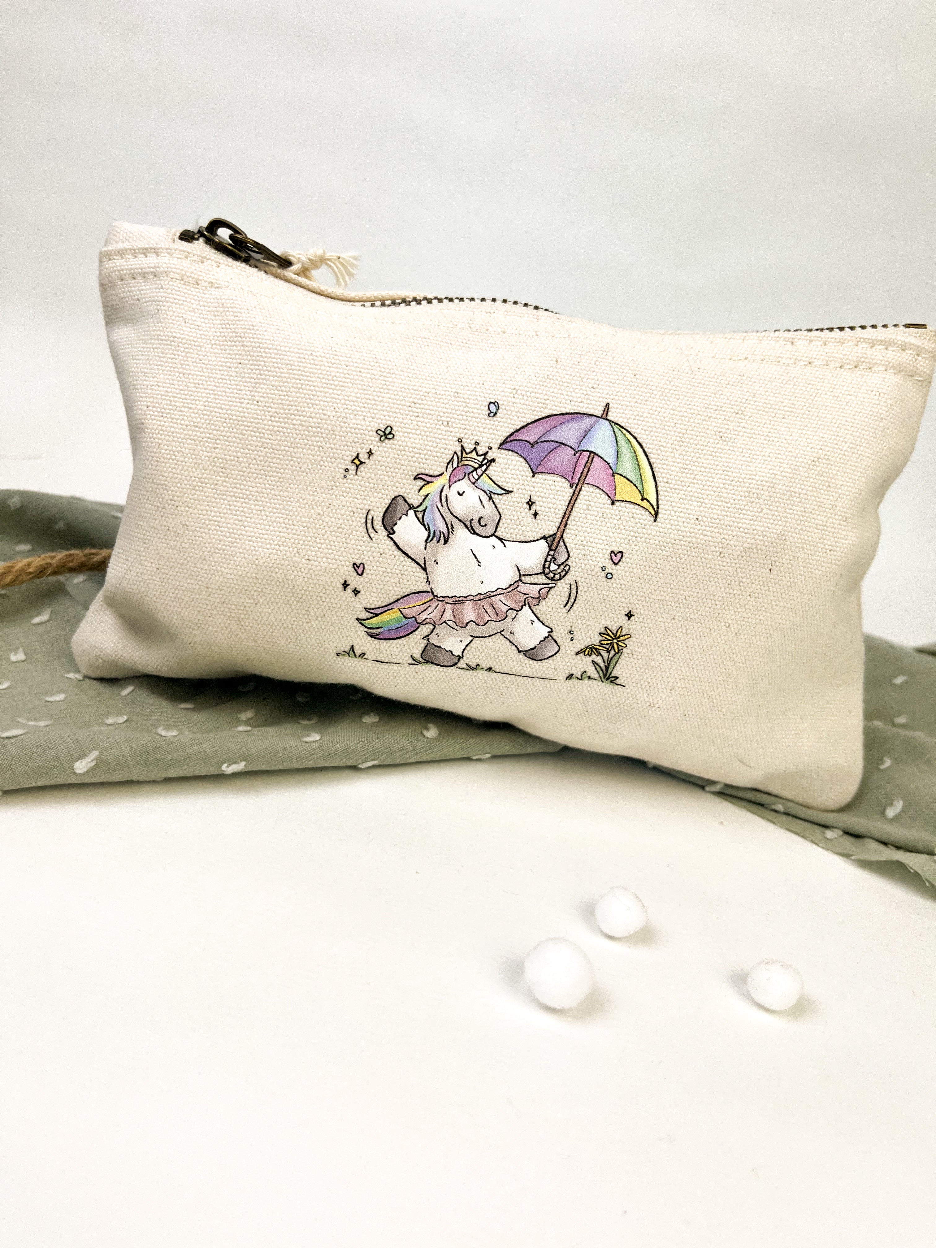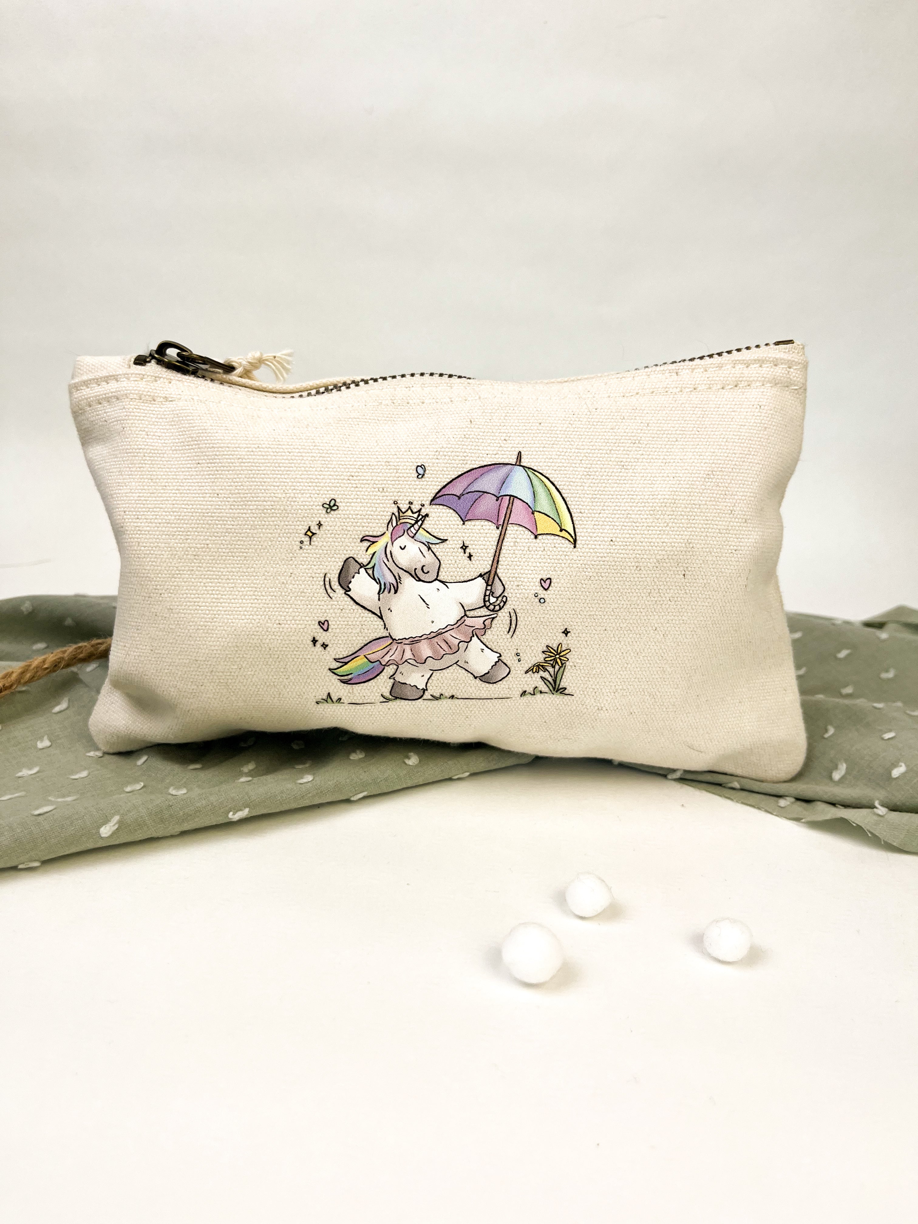 Dieser Kulturbeutel begleitet dich zuverlässig auf Reisen, im Alltag oder am Stall. Er bietet genug Platz für Kosmetik, Pflegeprodukte oder Stifte und wird durch meine liebevoll gestalteten Illustrationen zu einem ganz besonderen Begleiter.