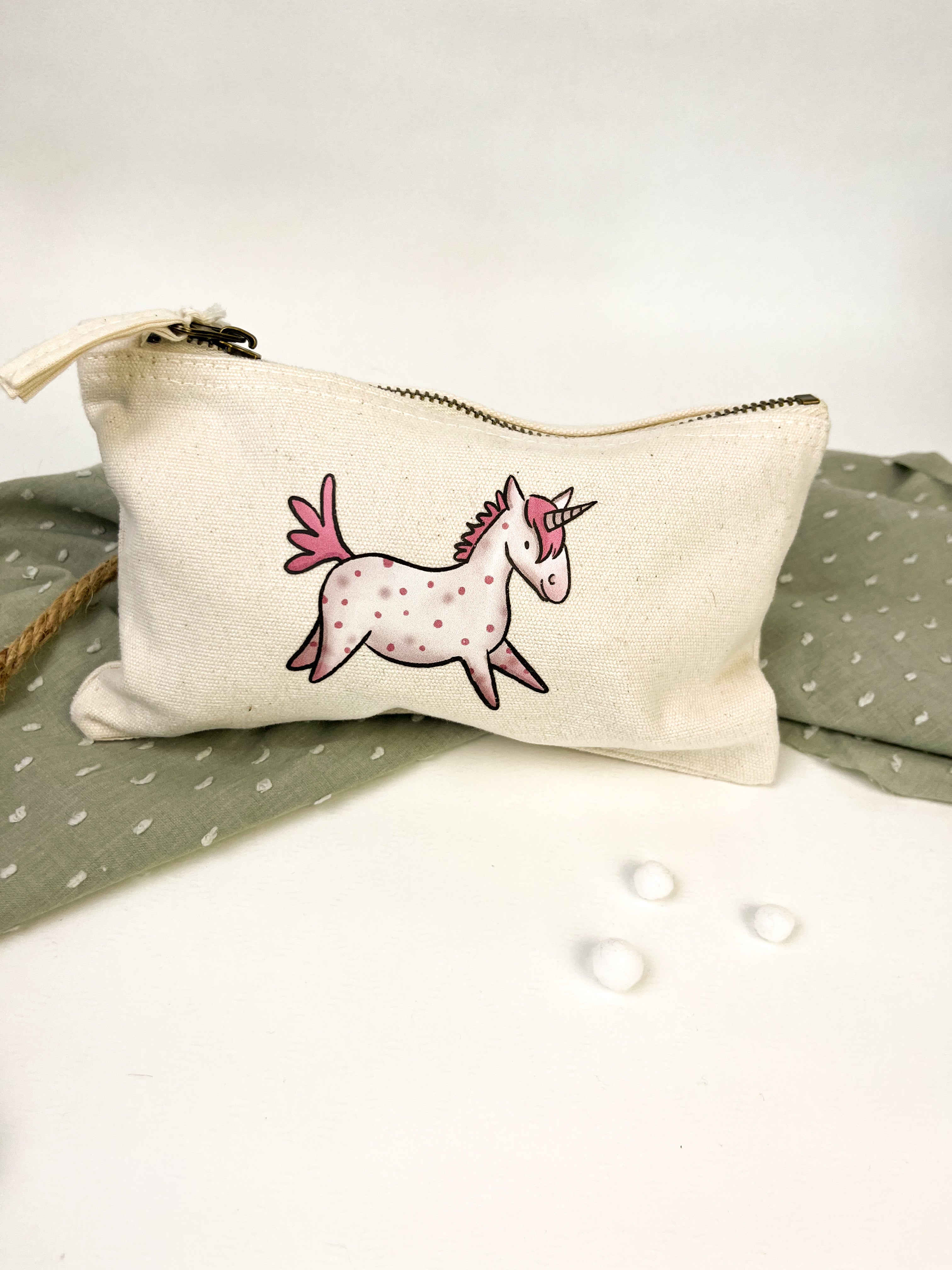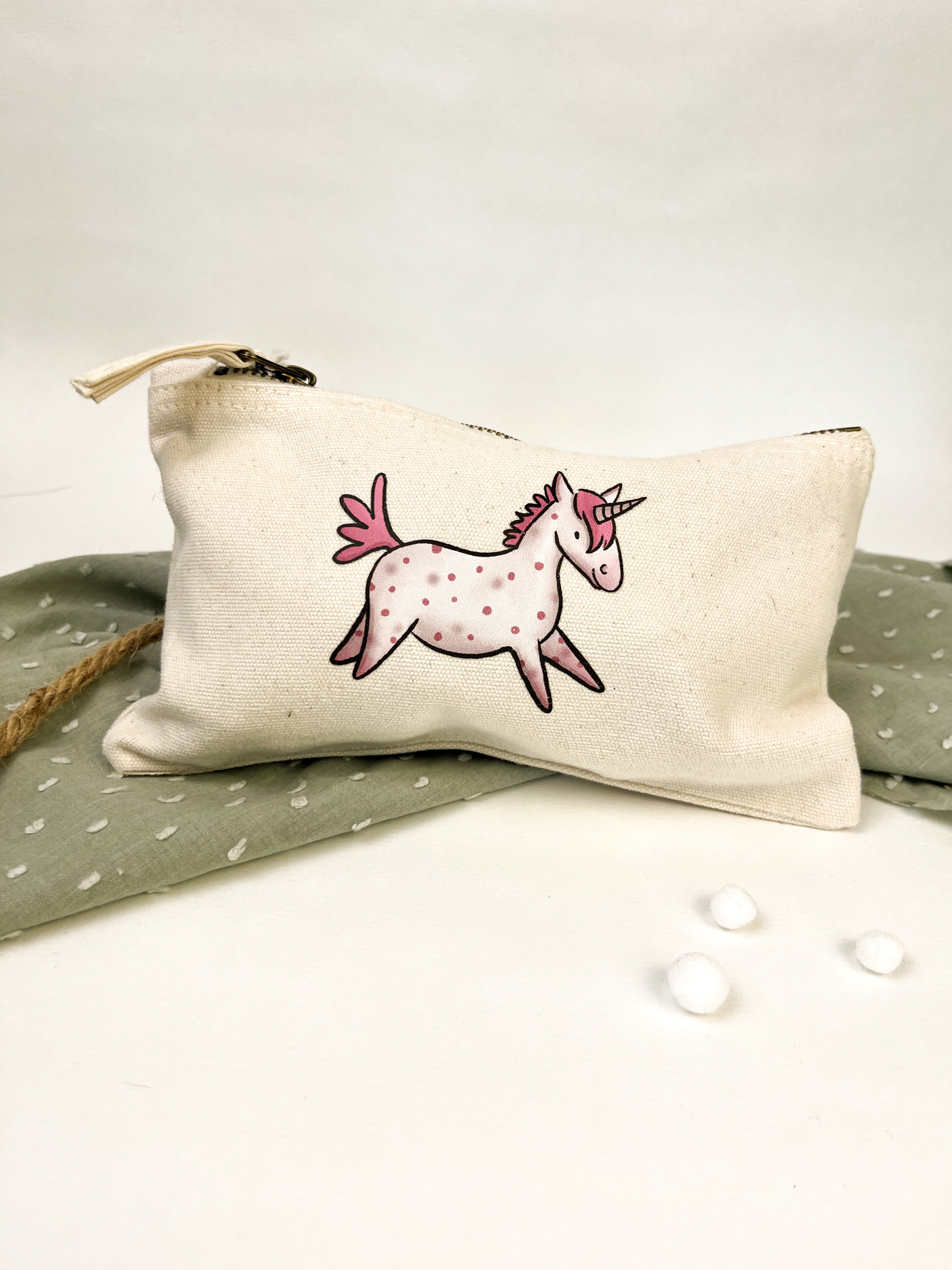 Dieser Kulturbeutel begleitet dich zuverlässig auf Reisen, im Alltag oder am Stall. Er bietet genug Platz für Kosmetik, Pflegeprodukte oder Stifte und wird durch meine liebevoll gestalteten Illustrationen zu einem ganz besonderen Begleiter.